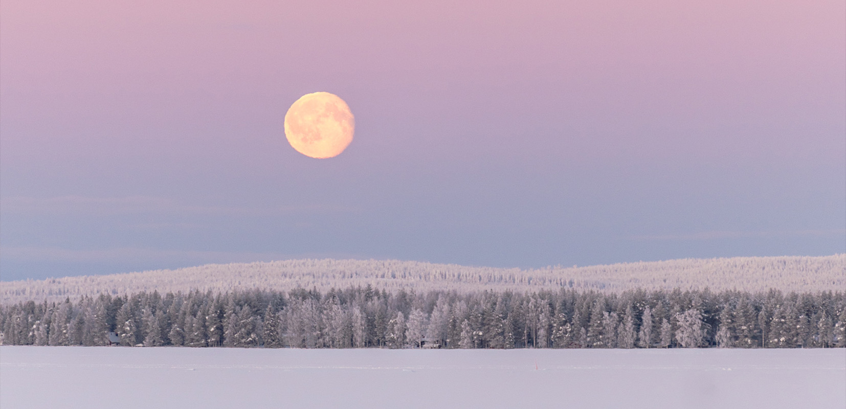 Straight from the sauna & hot-tub you have a stunning view of the frozen lake. All facilities just for the two of you.